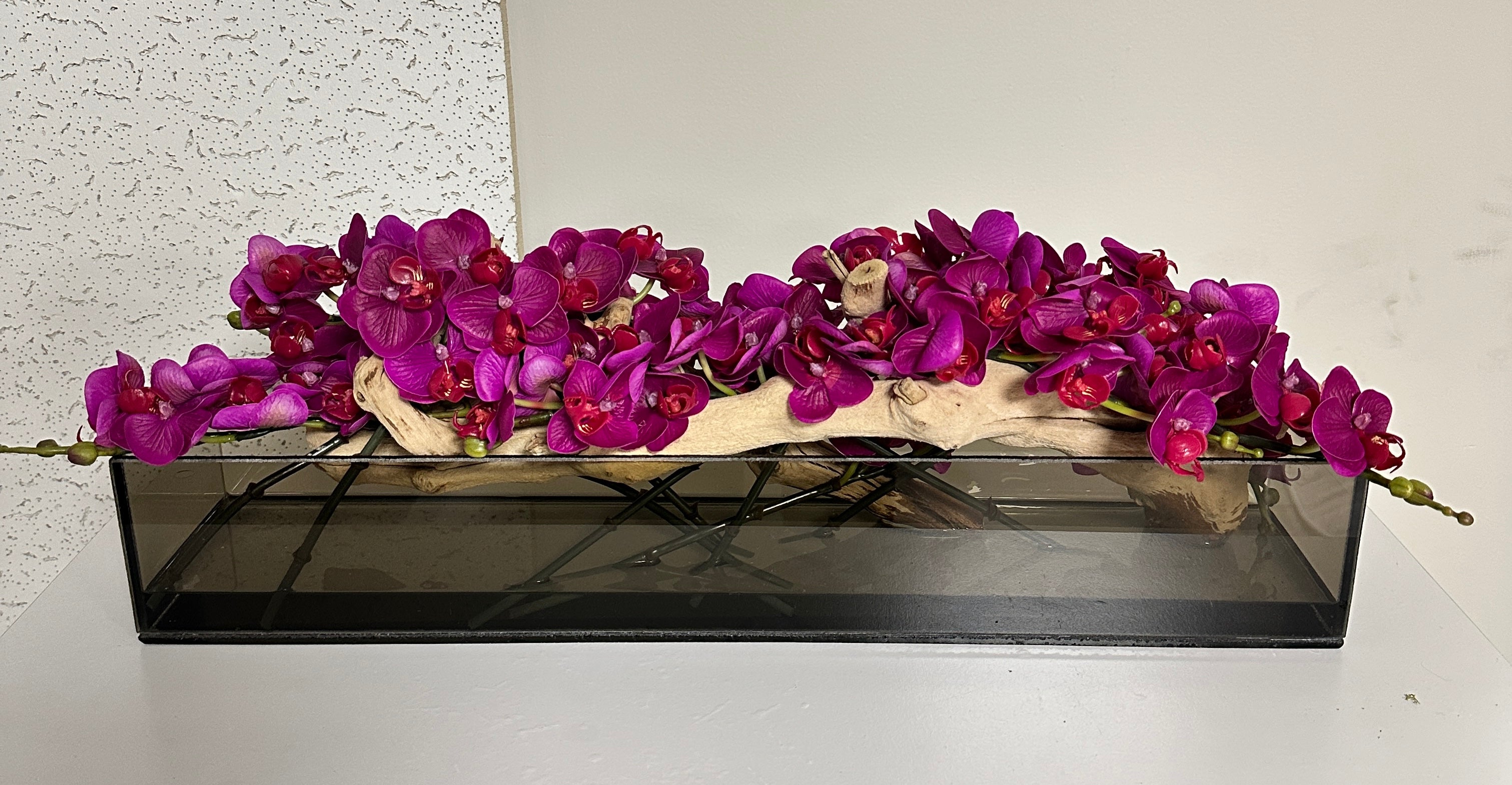 24” Smoked Aquario Fuschia Orchid Arrangement