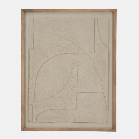 SH - 39x50 Paper Mache Wall Art Framed Glass, Off-white