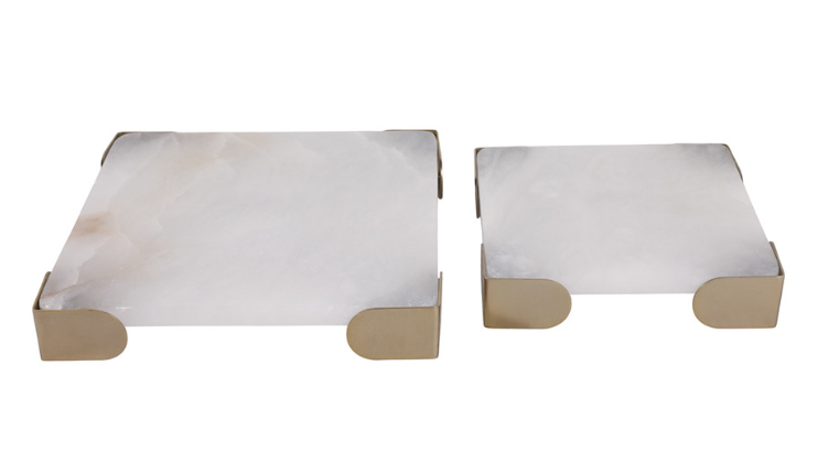 SH S/2 6/8" Ascend Alabaster And Metal Tray, Wht