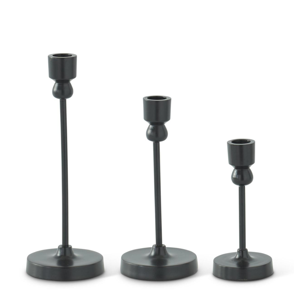 SET OF 3 SLENDER BLACK METAL TAPER CANDLEHOLDERS