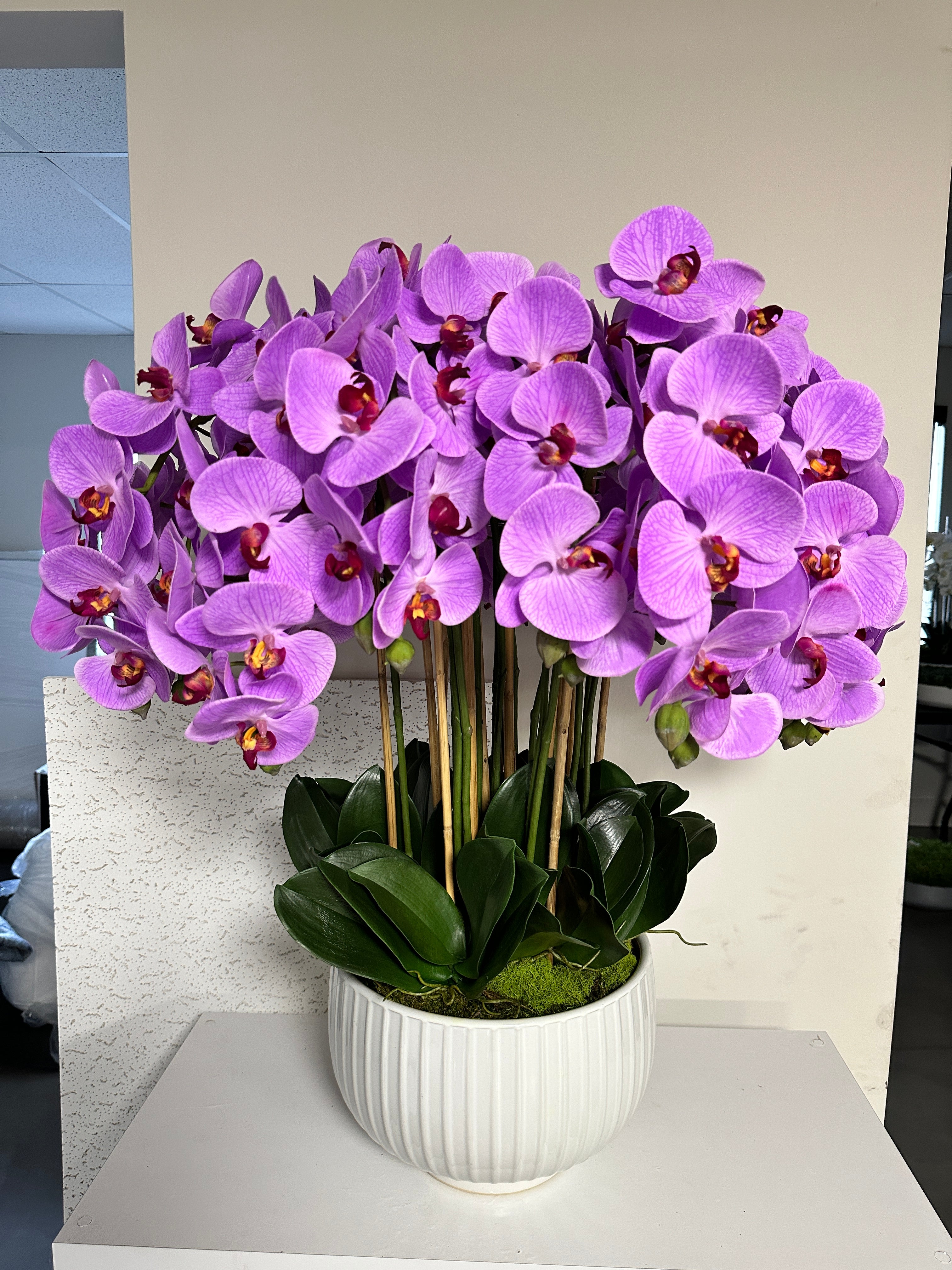 Lilac Orchid White Bowl Arrangement