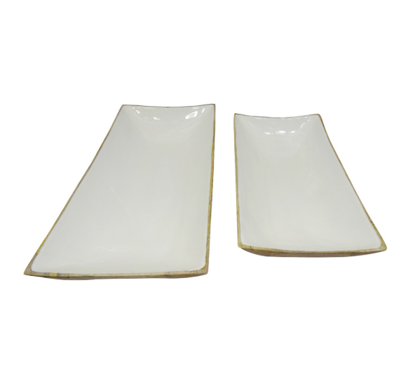 JF - Enamel and Mangowood Rectangular Trays, 2 Piece Set, 20.25"W & 24.25"W, White/Natural